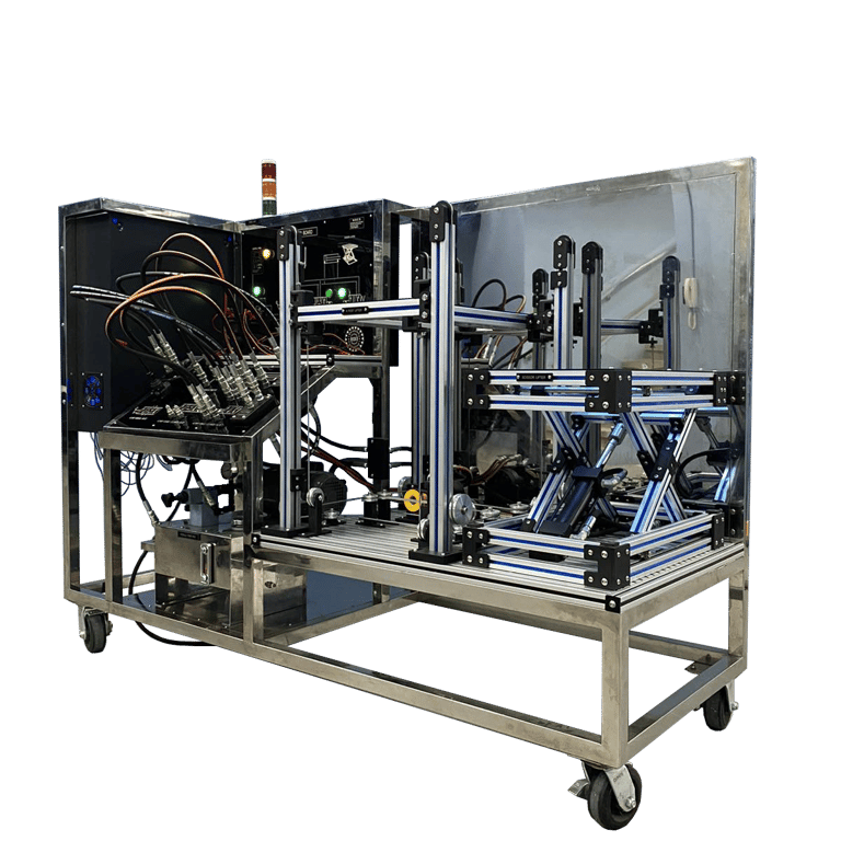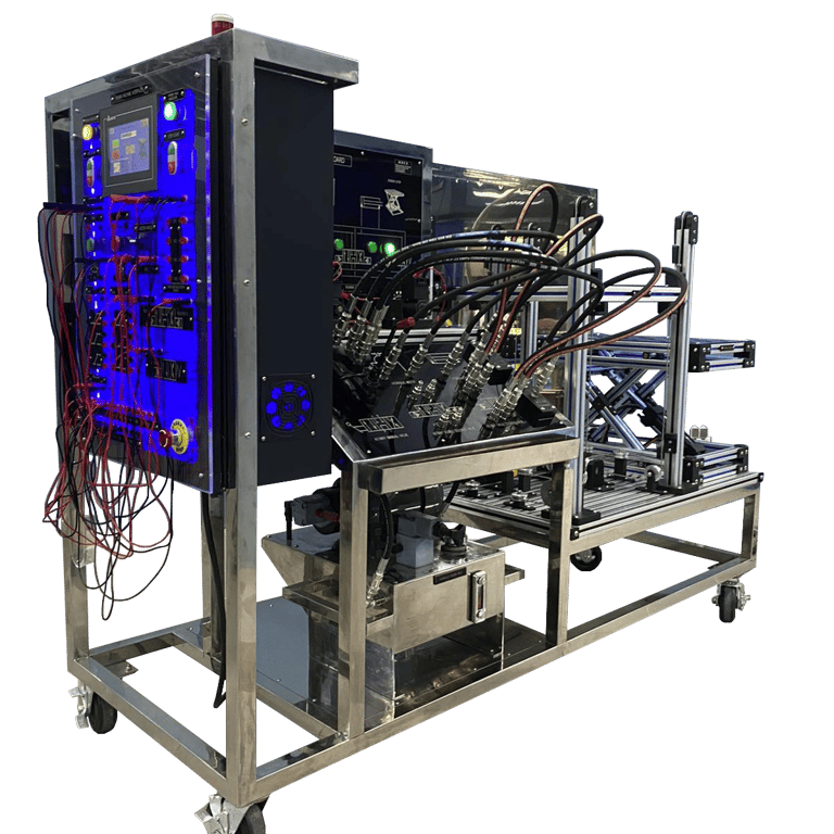 This trainer is ideal for technical education institutions and training centers aiming to provide practical knowledge in hydraulic systems. It is a specialized training system developed to provide an in-depth understanding of hydraulic systems and their applications. Tailored for educational settings, this trainer offers users hands-on experience with the key principles and operations of hydraulics, enabling practical learning in a controlled, interactive environment.
